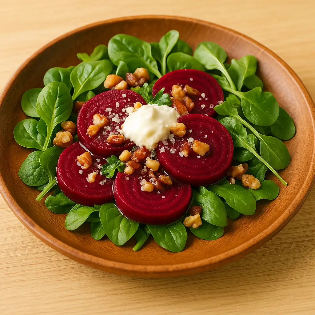 - ビーツを薄切りにし、ベビーリーフと合わせる。