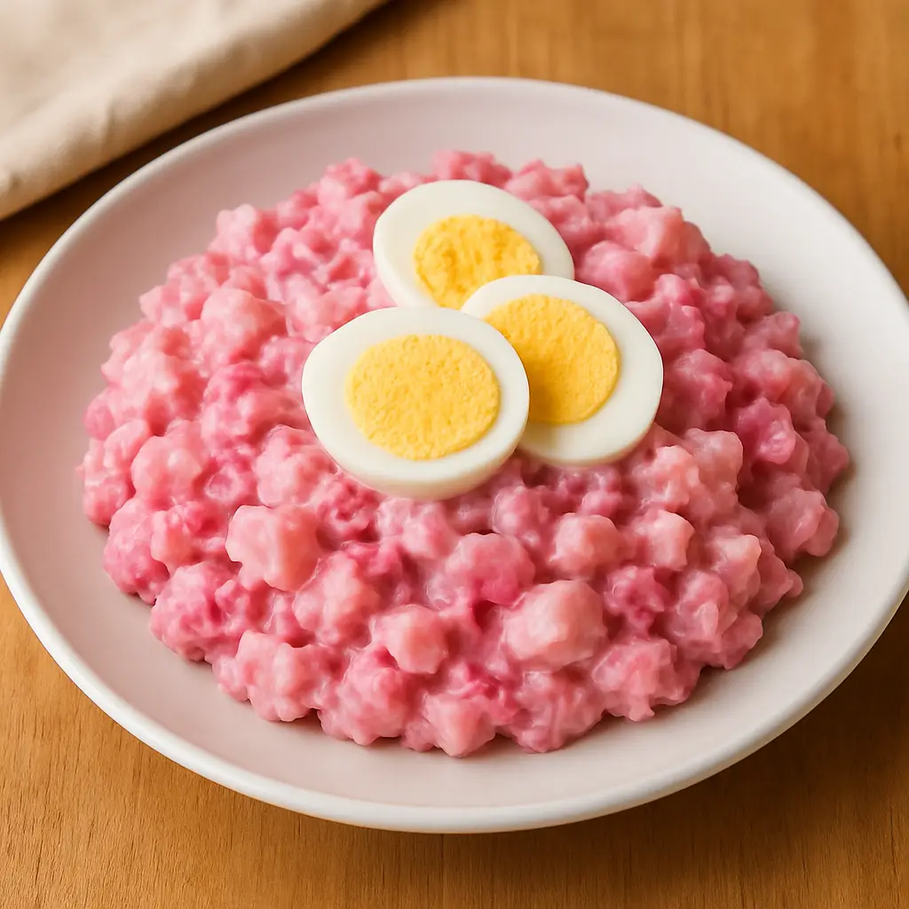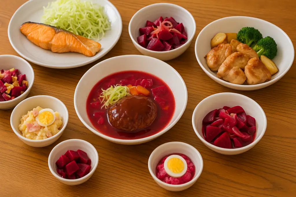 お弁当のおかずにも重宝します。 - ビーツ入りポテサラ × ハンバーグ:定番の洋食セットが彩り豊かになり、子どもから大人まで楽しめる献立に。
