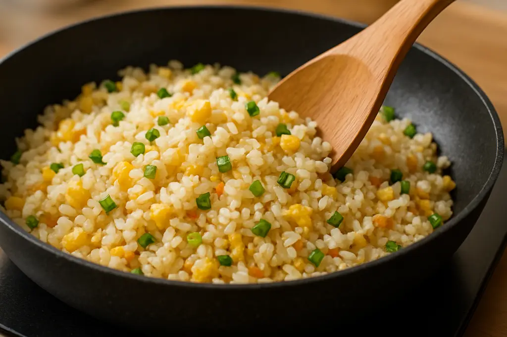 フライパンを熱して卵を先に炒め、ご飯を加えて素早くほぐすとプロのような仕上がりに。